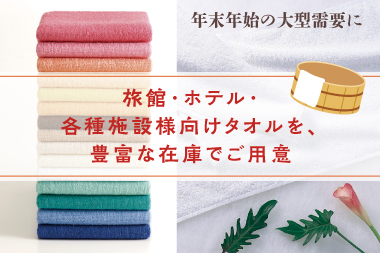 【在庫豊富】ホテル・旅館・各種施設様向けタオル、ご用意しています!