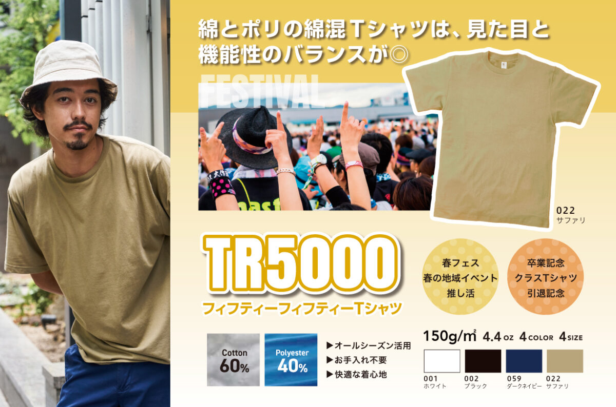 寒暖差のある季節でも着やすい!TR5000(フィフティーフィフティーTシャツ)